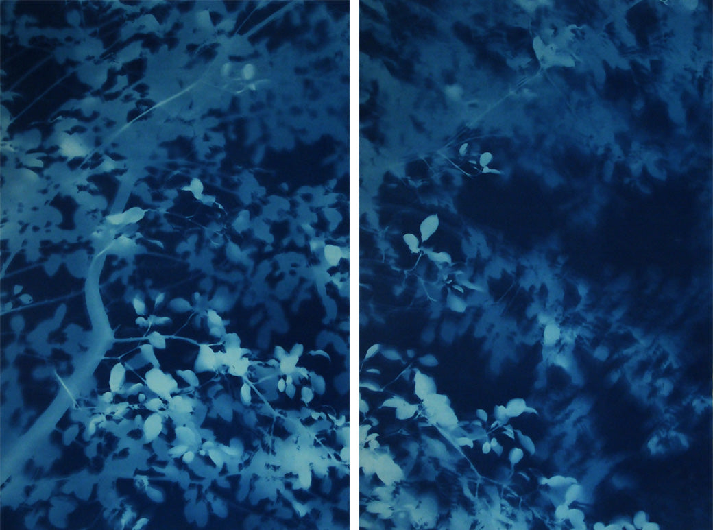 One of several types of early photographic print which emerged from the circle of pioneer photographer Henry Fox Talbot was the cyanotype. This characteristically blue, or cyan, print on paper substituted iron salts for those of silver, and was produced by a process of oxidation. While its striking deep blue color limited its aesthetic applications, its use in botany, as in the volumes of British flora assembled by early photographer Anna Atkins beginning in 1843, produced some very attractive works. Occasionally, both earlier in the twentieth century and now again in the current era, cyanotype is employed for its aesthetic value alone. As a non-silver process, cyanotypes are resistant to fading.